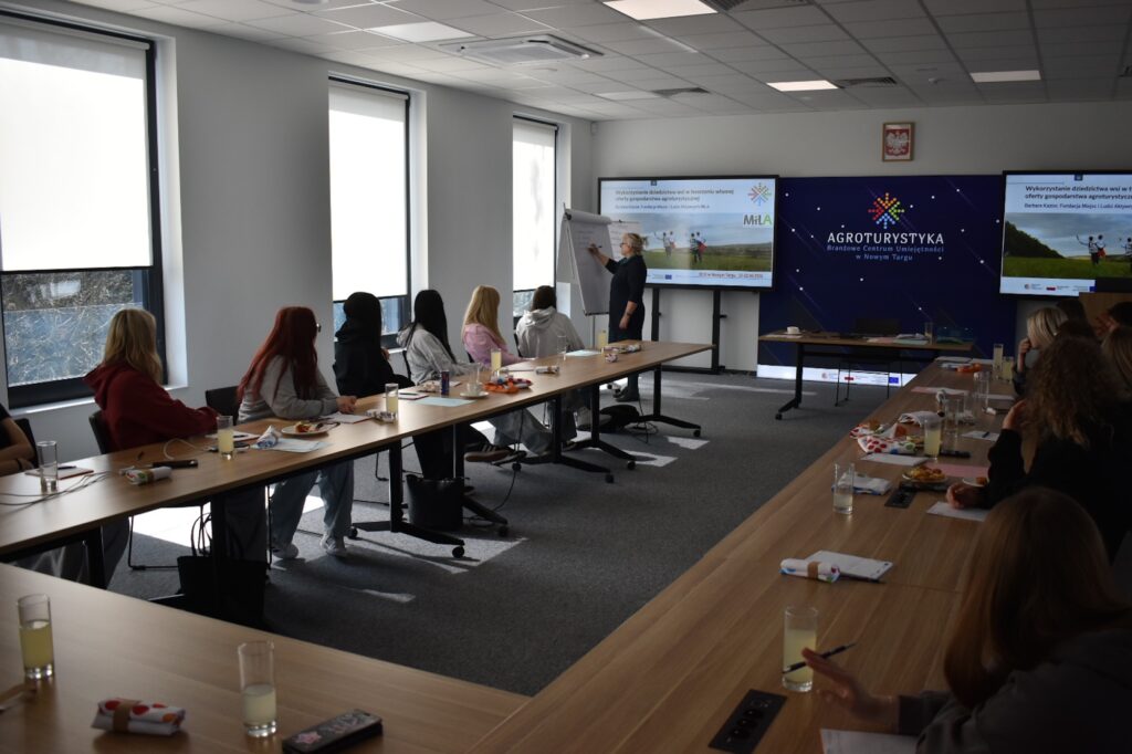 W programie znalazły się także tematy związane z inwentaryzacją lokalnego dziedzictwa, projektowaniem oferty agroturystycznej, tworzeniem scenariusza doświadczenia turystycznego oraz przygotowaniem materiałów promocyjnych. Ważnym elementem zajęć była również praca projektowa, podczas której uczestnicy opracowywali własne pomysły inspirowane lokalnym dziedzictwem.